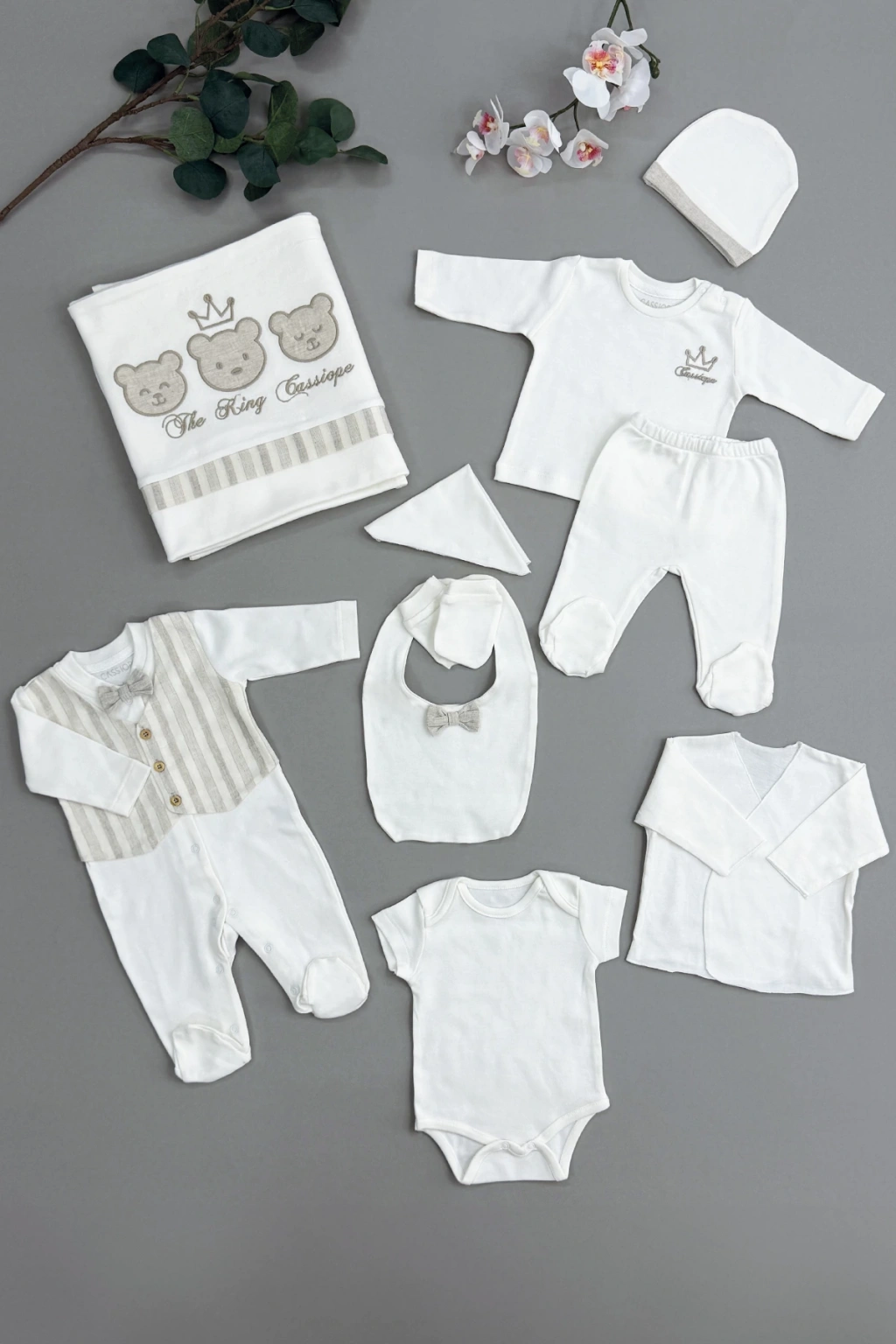 Bebeğinizin hassas cildi için özel olarak tasarlanmış Zenessa Bow Tie 10’lu Hastane Çıkış Seti, %100 pamuk kumaşı ile yumuşak dokusu ve nefes alabilen yapısıyla üstün konfor sunar. Antialerjik özelliği sayesinde yenidoğan bebeklerin cildine dost olan bu set, sağlıklı ve güvenli bir kullanım sağlar. Çıtçıtlı tasarımı ile kolay giydirme ve çıkarma imkanı sunarak bebeğinizin rahatlığını ön planda tutar.