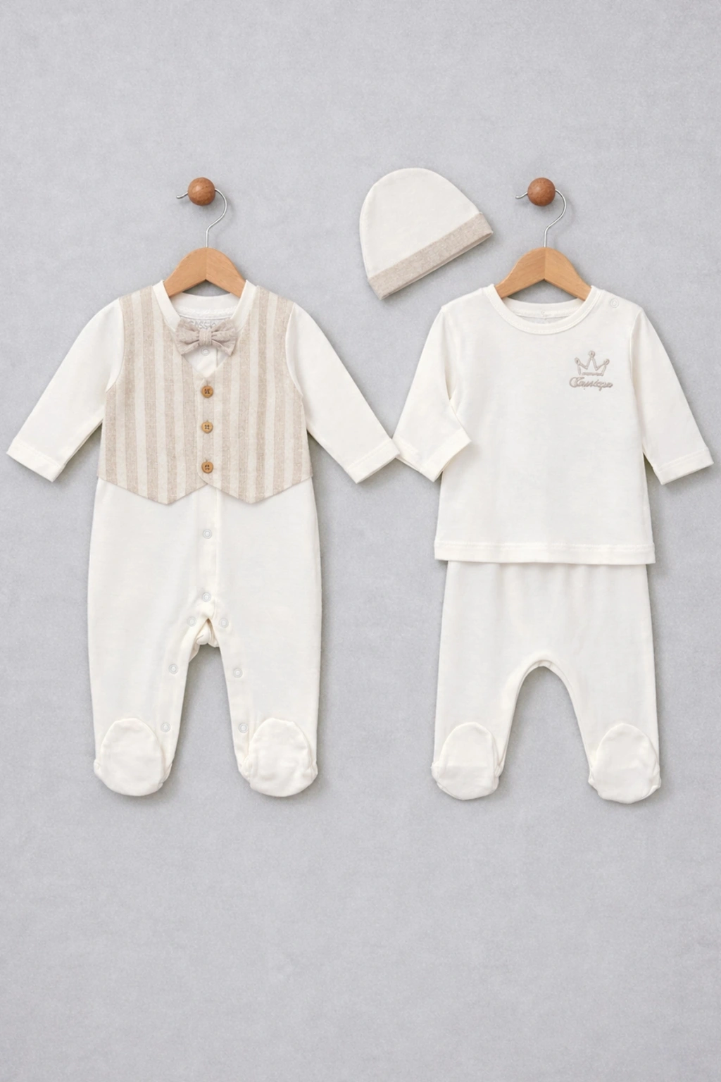 Neden Zenessa Bow Tie Seti Seçmelisiniz? Yenidoğan bebeklerin tüm temel kıyafet ihtiyaçlarını karşılayan bu 10'lu hastane çıkış seti, hem ebeveynler hem de bebekler için pratik ve konforlu bir çözüm sunar. %100 pamuk kumaşı bebeğinizin cildine nazikçe dokunurken, antialerjik yapısı güven verir. Şık ve zarif tasarımıyla bebeğinizin ilk günlerinde hem rahat hem de şık olmasını sağlayın. Hemen sipariş verin, bebeğinizin konforunu ve sağlığını en iyi şekilde koruyun!