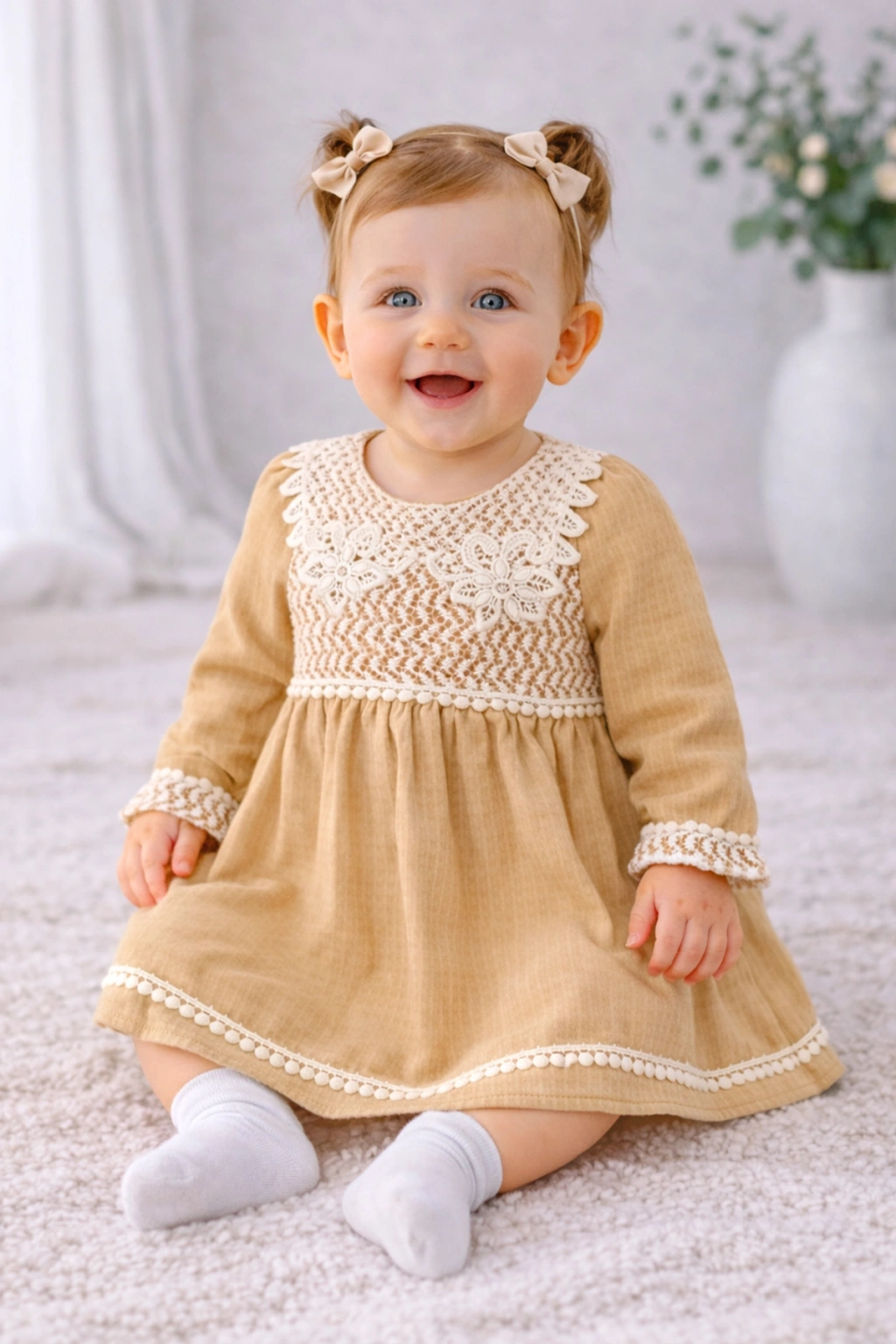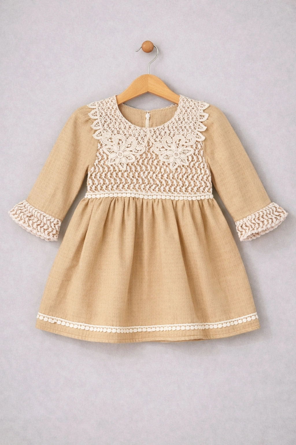 Dantel detayları elbiseye şık ve romantik bir hava katarken, sade ve zamansız tasarımı hem günlük kullanıma hem de özel gün kombinlerine uyum sağlar. Rahat kesimi sayesinde çocukların özgürce hareket etmesine olanak tanır. Yaz aylarında gardıropların vazgeçilmez parçalarından biri olmaya adaydır.