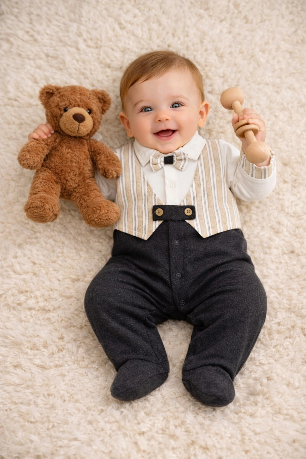 Şıklığı ve konforu bir arada sunan Zenessa Papyon Detaylı Erkek Tulum, özel günlerde ve günlük şık kombinlerde erkek çocuklar için zarif bir stil oluşturur. Papyon detayı tuluma klasik ve sevimli bir görünüm kazandırırken, sade kesimiyle modern bir duruş sergiler.